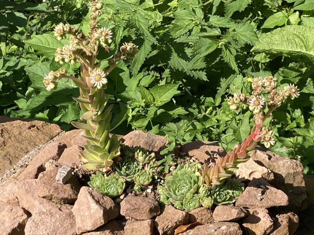 The flowerbeds focus on a number of plants.