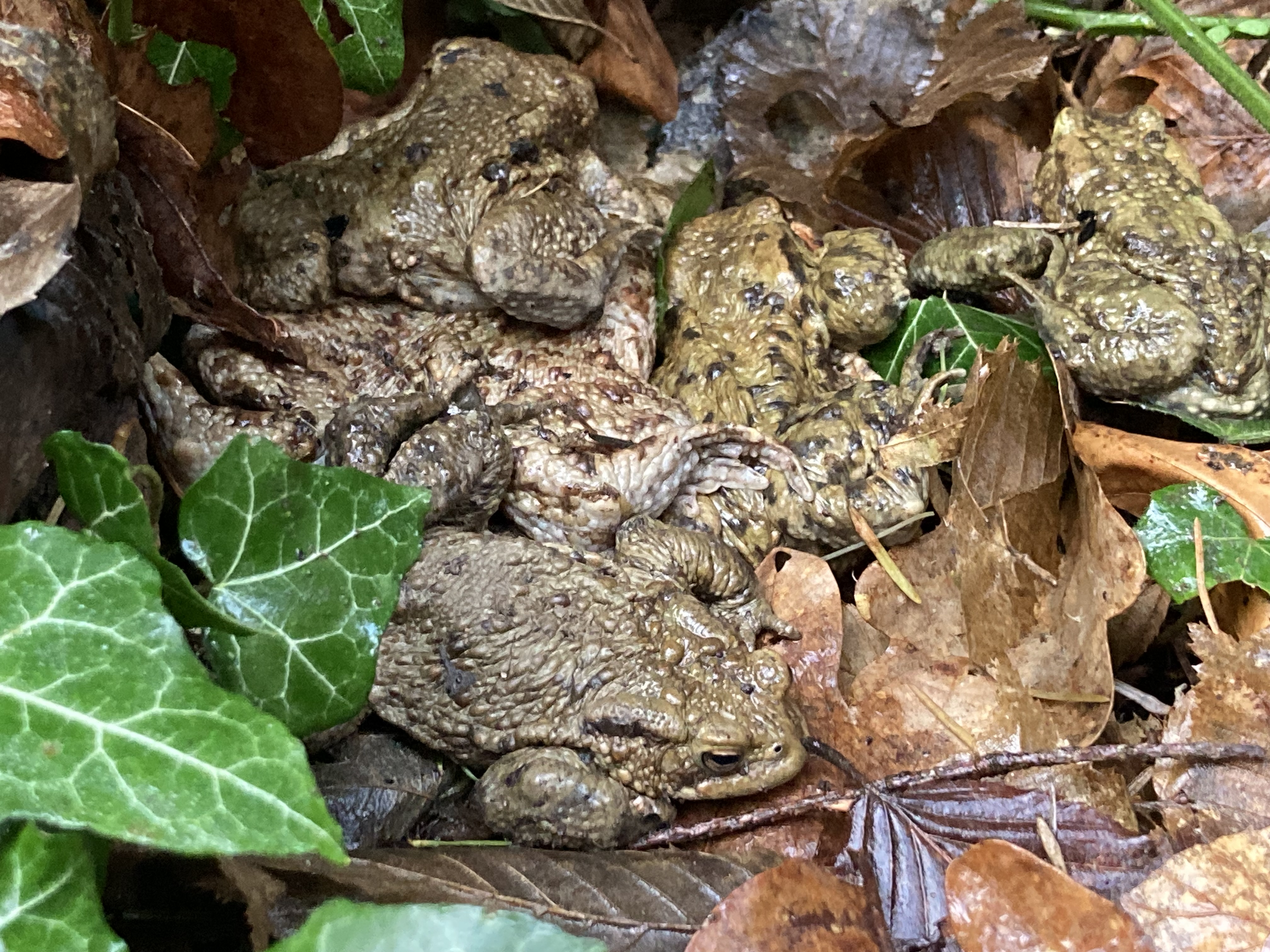 That's right, toads, frogs, newts and salamanders spend the winter in the forest, warm under dead leaves. In February, they hop out of their hiding places to return to the pond where they were born.