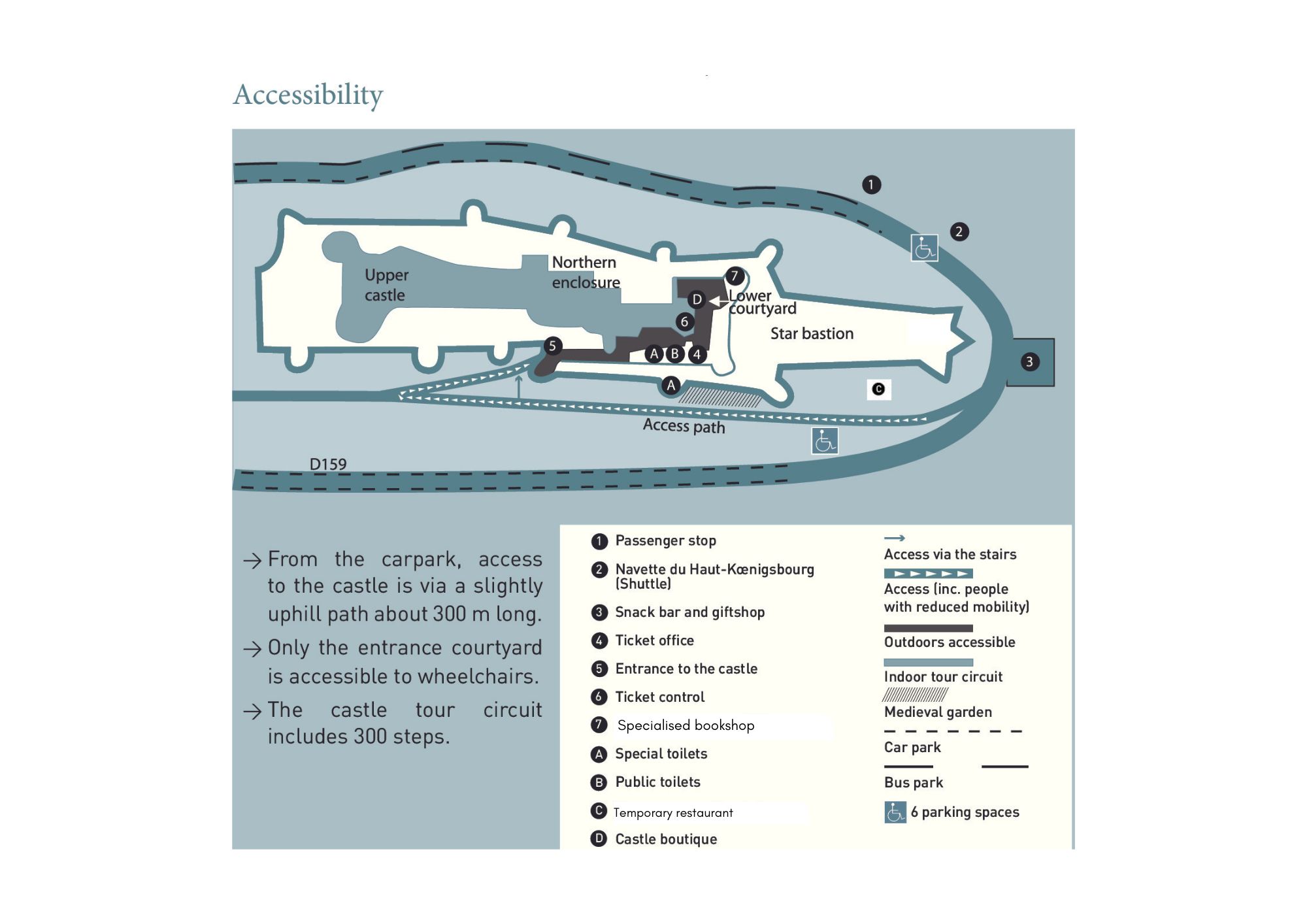 The reservations and customer relations department is at your disposal for any further information concerning the castle's accessibility by telephone on +33 (0) 3 69 33 25 00 or by e-mail (Monday to Friday).