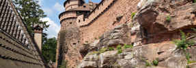 Dominating the Alsace plain at an altitude of 757 metres, the Haut-Koenigsbourg castle has all the assets of a fortress: a strategic position that was relatively easy to defend in the past, and today an exceptional panorama of the Alsace plain, the Vosges mountains, the Black Forest and sometimes even the Alps.
