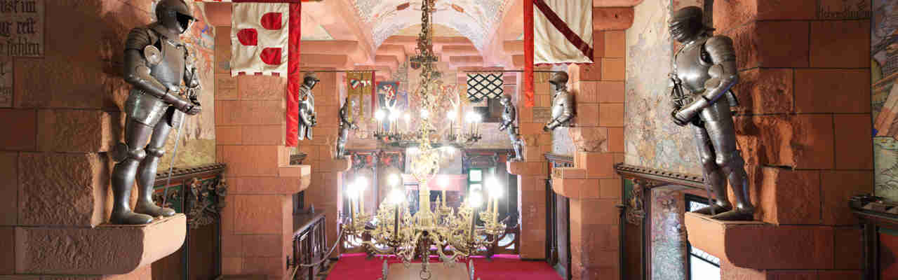 Or la pièce est plus haute de plafond que ce qu’elle était au Moyen-Âge, cela pour le prestige de l’empereur et également pour que le regard du visiteur puisse se porter sur la voûte. Il y découvre l’aigle qui y figure, symbole impérial germanique par excellence, et l’on comprend ainsi les raisons qui président à la restauration. Il s’agit de montrer que le château et l’Alsace font partie intégrante de l’Empire et que leur histoire est germanique.