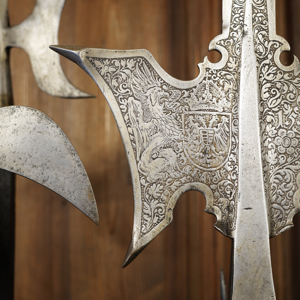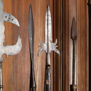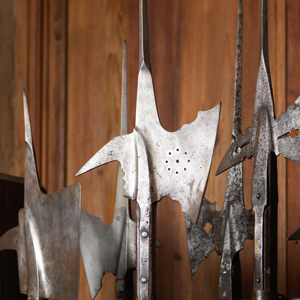 La plupart des armes de cette pièce sont des armes d’hast. Ce mot vient du mot latin « hasta », la hampe.