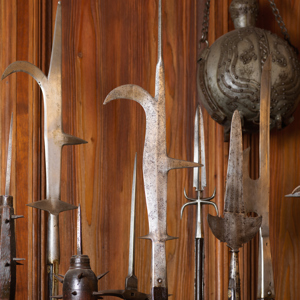 Les pièces d’armement exposées au château sont en grande partie issues de la vente de la collection d’armes anciennes Hefner-Alteneck ainsi que de la vente Ritleng au début du 20e siècle.