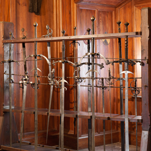 C’est à la demande de l’empereur Guillaume II, que l’architecte Bodo Ebhardt, en charge de la restauration dans les années 1900, avait été mandaté pour acheter ces objets. Des pièces destinées à décorer les salles du château et en particulier les râteliers qui avaient été placés en salle d’armes.