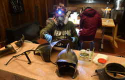 Nettoyage des six armures de la salle du Kaiser au château du Haut-Koenigsbourg