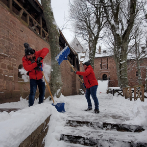 Il est donc essentiel que chaque membre de notre équipe participe activement au déneigement du château avant l’arrivée des visiteurs.