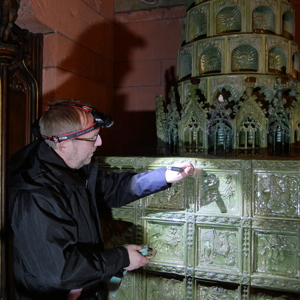 Entretien et nettoyage des six armures de la salle du Kaiser au château du Haut-Koenigsbourg en novembre 2025.