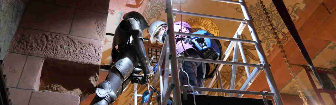 Nos six armures exposées dans la salle du Kaiser bénéficient régulièrement d’un nettoyage minutieux ainsi que d'un diagnostic.