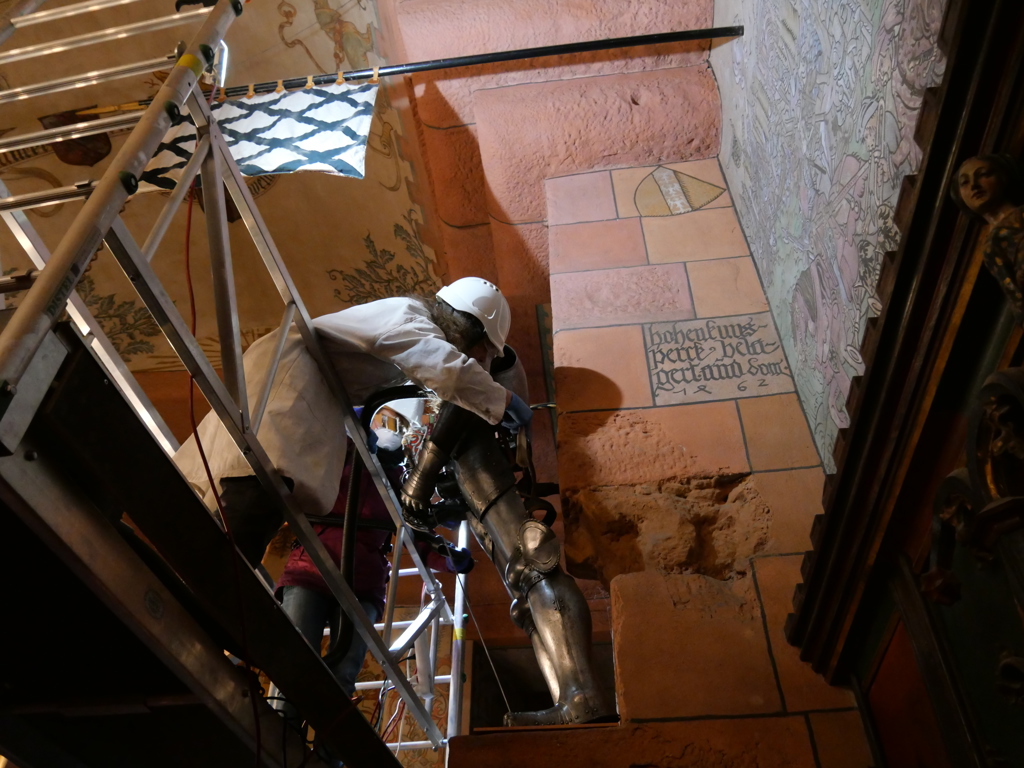 Entretien et nettoyage des six armures de la salle du Kaiser au château du Haut-Koenigsbourg en novembre 2025.